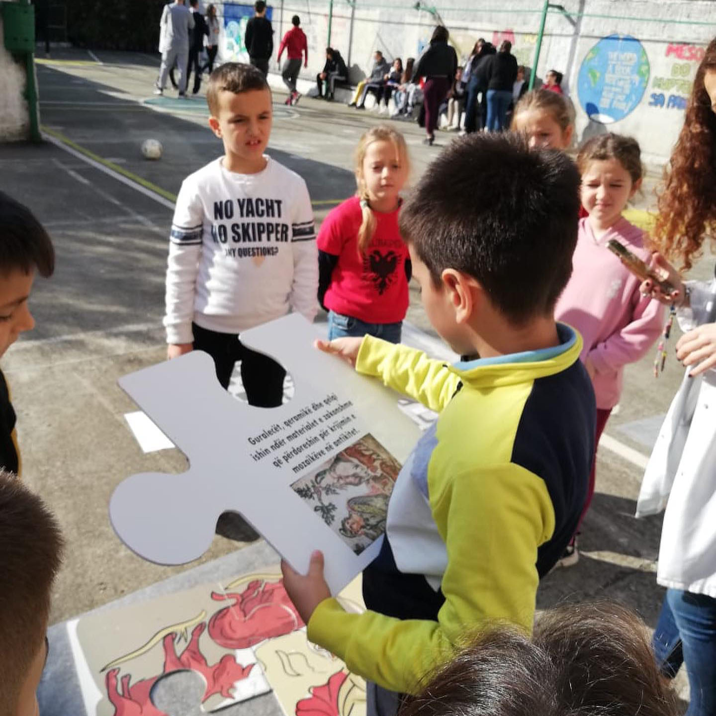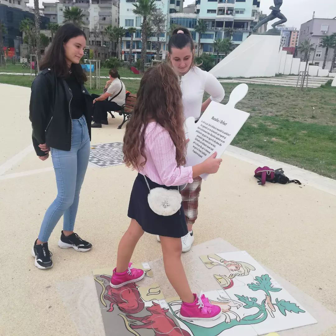 Between the end of September and mid-December 2021, a total of 100 children aged between 6-11 got to play this playground game, along with 20 teachers and heritage professionals in four different spaces: MuZEH Lab, a school and public space in Durrës city.Thanks to the support of Goethe Zentrum Albania for funding this project. MuZEH Lab is also thankful also to the students of archaeological tourism at Aleksander Moisiu University and volunteers for mentoring the workshop.