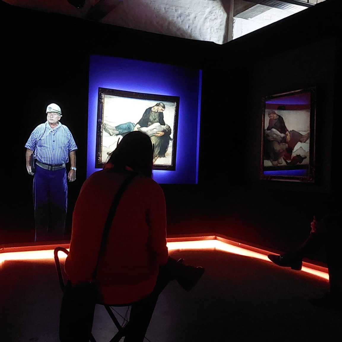 Kunstuur breaks all records in Belgium. More than 150,000 people have visited this experience so far, which is organised by one the country’s most mainstream culture producers (used to making TV programmes for children, so not a traditional museum team). The concept is simple: a one-hour exhibition, strictly timed, with a limited amount of people walking from one dark room to the next, where you follow an audio voice telling a story about the painting you see highlighted in the dark in front of you. But you are not just hearing a voice (or music), you also see this person in a 3D video screen next to the painting. The voice/person is different for every painting, because every painting has its own story.