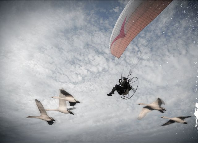 The Flight of the Swans project took place in 2016 with the human swan, Sacha Dench, flying by paramotor in often perilous conditions along the migration route of Bewick’s swans. Polar bears, personal injury and huge logistical challenges, as well as everything that the real swans have to deal with, including the weather, did not stop the human swan. By using powerful storytelling, along with the ambitious adventure to capture media attention, the project gained huge support.